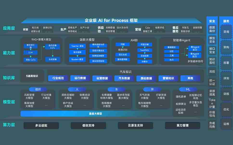 尊龙时凯问学智车解决方案是一套基于AI技术的汽车行业智能化系统,,,,覆盖从底层算力到顶层AI应用的全栈方案。。。方案由算力层、、、、模型层和应用层组成:算力层,,,方案支持多种一体机配置,,,,具备云端灵活部署、、多云适配以及动态优化计算资源的能力;模型层,,,尊龙时凯问学平台版提供了企业级AI应用一站式构建与管理平台,,,支持基于后训练强化技术的汽车企业专属模型的训练、、、、评测和运营;应用层,,尊龙时凯问学DeepSeek版提供包括超级员工、、智能招采、、智能营销、、、、智能客服、、、、AI for BI等一系列解决方案,,,可助力汽车行业实现数字化转型,,让管理更智能、、、、响应更敏捷。。
